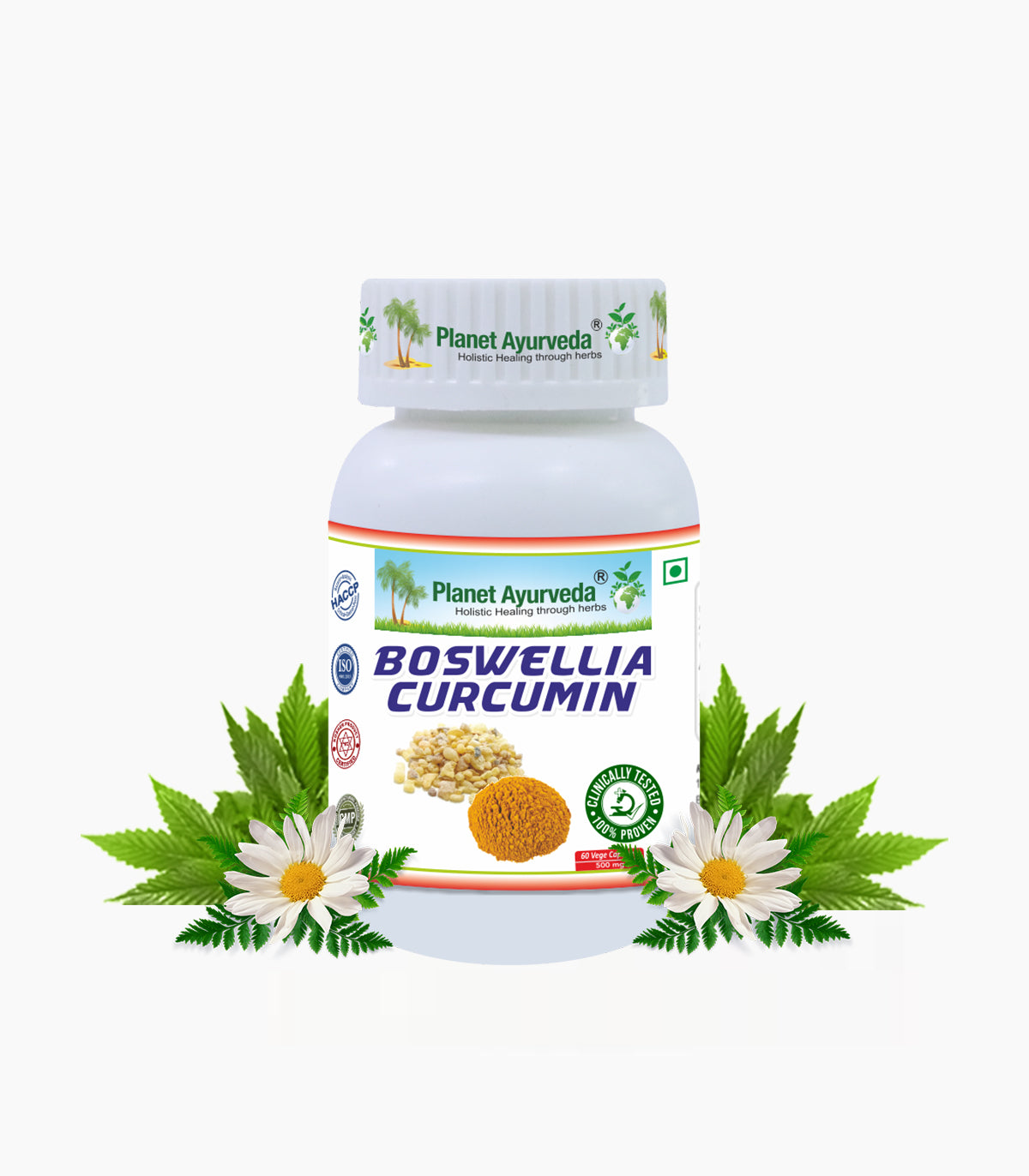 Boswellia Curcumin consists of two potent anti-inflammatory and antioxidant herbs which are shallaki (Boswellia serrata) and curcumin (Curcumin longa). Both of these are helpful in reducing inflammation of muscles, bones and tendons, skin disorders, and allergic conditions. These herbs have anti-septic, anti-inflammatory, antioxidant properties. They work by improving circulation and also have analgesic properties that help treat pain in the affected area.