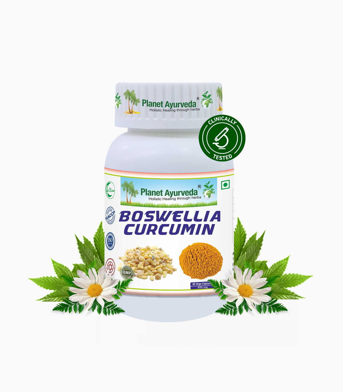 Boswellia Curcumin consists of two potent anti-inflammatory and antioxidant herbs which are shallaki (Boswellia serrata) and curcumin (Curcumin longa). Both of these are helpful in reducing inflammation of muscles, bones and tendons, skin disorders, and allergic conditions. These herbs have anti-septic, anti-inflammatory, antioxidant properties. They work by improving circulation and also have analgesic properties that help treat pain in the affected area.
