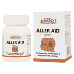 Bakson's Aller Aid Tablet are homoeopathic tablet for allergies that provide relief from hay fever without any side effects. These tablets for allergies cause no drowsiness or disturbance in daily routine. Aller Aid tablets are helpful against the runny nose, sneezing, watery eyes, sinus congestion (Sinusitis), fever and body ache due to allergies and hay fever.Aller Aid tablets contain Natrum muriaticum and Ferrum phosphoricum that help relieve sneezing, aching head, sore throat, pains and soreness all over the body and marked exhaustion.