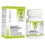 Bakson B 56 drops is a homeopathic medicine used in alleviating symptoms associated with Thyrotoxicosis, such as trembling of hands, excessive perspiration, exophthalmos (abnormal protrusion of the eyeballs), emaciation (extreme thinness), diarrhea, and other related symptoms.