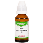 Bakson's Rhus Toxicodendron Dilution is a homoeopathic medicine useful for ailments from strains and over lifting. It can help with blisters, herpes; urticaria; pemphigus; erysipelas.