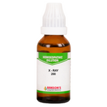 Bakson's X-Ray Dilution 30 is a homoeopathic formulation prepared by exposing a vial of alcohol to X-rays and is useful in complications associated with repeated exposure to X-rays. It helps prevent skin lesions and other diseases affecting reproductive organs. It also helps relieve rheumatism and blood disorders.