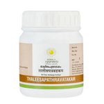 Thalesapathra Choornam is a classical Ayurvedic herbal powder used mainly in respiratory conditions like cold, cough, asthma, and bronchitis. It is usually taken internally and is helpful in balancing Kapha dosha.