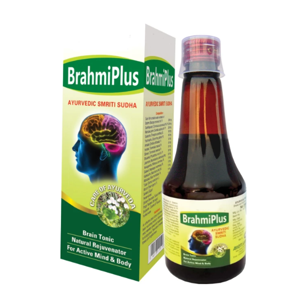 Allen Ayur Brahmi Plus is an Ayurvedic brain tonic formulated to improve concentration, memory, and mental alertness. It helps relieve mental fatigue and stress while promoting calmness and better focus. The formulation combines classical Ayurvedic herbs known for their Medhya (nootropic) and Rasayana (rejuvenative) properties, making it beneficial for students, professionals, and individuals experiencing mental stress or cognitive decline.