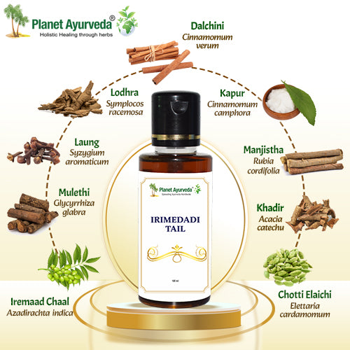Irimedadi Oil is a classical preparation which is having good results in many oral conditions. The oil is not for internal indigestion but to do gargles. The oil can be given to children as well. The formulation has ingredients like irimed, khadir, lavanga, Manjistha, haridra, Lodhra, Yashti, Karpura, Dhatatki and many others. Irimedadi oil is helpful in keeping the mouth free from microbes and also helps in fighting bad breath. The oil is quite supportive in case of bleeding gums, toothache and swollen gums. The formulation also helps with hypersensitivity of the teeth as well.