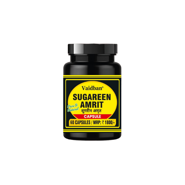A 100% Ayurvedic herbal supplement designed to help support healthy blood sugar levels and diabetes management using natural herbs like Kala Jamun and Methi, formulated to promote overall metabolic balance and wellbeing.