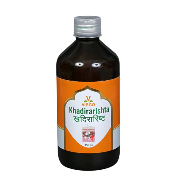 Virgo Khadirarishta is a classical Ayurvedic blood purifier and skin tonic, prepared through natural fermentation. The main ingredient, Khadira (Acacia catechu), is highly valued for its ability to detoxify the blood and support healthy skin. This formulation is widely used in the management of skin disorders such as eczema, psoriasis, acne, itching, and allergies. It also improves digestion, strengthens immunity, and promotes overall wellness by eliminating toxins from the system.